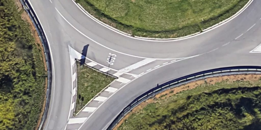 Come si vede dalle foto aeree, la rotatoria di precedenze/stop ne ha addirittura tre. La zona sud è ricca di soluzioni urbanistiche creative, come il pericoloso incrocio a “X” del Maroccone, noto anche per la scritta “Puccio sterza”.