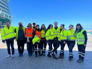 Livorno 25 aprile 2023 – Ruffini con le lavoratrici del porto per girare una clip