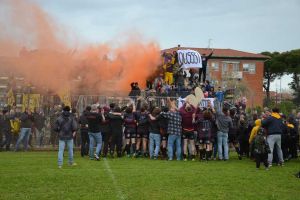 STAGNO (Livorno). Tutte le promozioni sono belle e indimenticabili, ma quando si conquistano con questa cornice di pubblico, con questa splendida festa, assicurandosi il ‘Grande Slam’ (leggi 14 vittorie su 14 partite disputate nel corso della stagione), sembra di vivere un sogno. I Lions Amaranto Livorno, battendo con un perentorio, indiscutibile, nettissimo 62-7 l’Olbia, hanno messo il sigillo sul sospirato (e meritatissimo) salto in serie B. In realtà, dopo gara-uno (vinta domenica 28 aprile in terra gallurese 5-27, 1 meta a 5, 0 punti a 5 in classifica), la strada era diventata in discesa. I Lions, tanto per non correre pericoli, in questo match di ritorno, sotto la pioggia (che non ha scoraggiato i numerosi e calorosi supporters) hanno accelerato fin da subito. Gli scatenati ragazzi guidati da coach Giampaolo Brancoli hanno siglato due mete nei primi 6 minuti (a bersaglio due uomini di mischia: il solito implacabile terza centro e capitano Scardino ed il prezioso pilone Fusco). 10-0 dopo appena 300 secondi dal fischio d’avvio e situazione sempre più rosea. I padroni di casa, dopo aver tirato un po’ il fiato, hanno aritmeticamente chiuso i conti nella parte centrale della prima frazione. La terza meta dei Leoni è stata siglata dal validissimo flanker Tamberi (per lui seconda promozione con la maglia amaranto, dopo quella del 2008). La quarta meta, quella del bonus e della certezza matematica della serie B, è giunta al 28′, con l’attivo Novi, passato, dopo pochi minuti dal fischio d’avvio, per l’infortunio dell’estremo Campisi e l’ingresso dell’ala Rela, al ruolo di apertura. Rolla, slittato dall’apertura al ruolo di estremo, ha arrotondato con la trasformazione: 22-0. Promozione in cassaforte con 50 minuti ancora da giocare: un record… I Lions non si sono accontentati (in teoria, a quel punto, avrebbero potuto perdere anche 22-200….) ed hanno continuato a spingere. Siccome i Lions sono forti e completi in tutti i settori e in tutti i reparti, significativo che le due mete con le quali hanno ulteriormente allungato, prima della fine della prima frazione, siano state siglate da un uomo del reparto arretrato (De Libero) e da un avanti (il giovanissimo pilone Bertini): altri due elementi che hanno contribuito alla causa comune dall’inizio della trionfale annata. Rolla ha trasformato in entrambe le occasioni: 34-0 all’intervallo. L’Olbia (che ad onta delle 15 mete incassate tra andata e ritorno è stato un avversario vero e mai malleabile: la squadra giallonera è giunta con pieno merito a questi spareggi) ha accorciato le distanze in avvio di ripresa: 34-7. Poi, in attesa della festa (con tanto di fumogeni, fiumi di birra e pacifica invasione degli atleti delle rappresentative under amaranto), i Lions hanno scavato un solco ancor più profondo. Le mete di Scardino, Rela, Ciandri, e Sheu (trasformate tutte quante da Rolla) hanno consentito di spiccare definitivamente il volo, di imporsi 62-7 e di approdare al paradiso della serie B. Le celebrazioni per il ritorno, dopo otto anni di attesa, nella cadetteria, sono poi proseguite negli spogliatoi e con un memorabile ‘terzo tempo’ nella propria ‘storica’ struttura della via della Chiesa di Salviano. A proposito di struttura sportiva. In questa annata semplicemente favolosa, la prima ‘meta’ (preziosa quanto il salto di categoria) è stata quella messa a segno dalla società, che vincendo il relativo bando promosso dal comune di Collesalvetti, si è assicurata, per otto anni, la gestione del ‘Priami’ di Stagno. La sensazione è che la promozione in B (giunta dopo 14 vittorie su 14, con 12 gare condite dal bonus-attacco…) sia solo un punto di partenza. In salute il sodalizio e tutto lo staff. Si può – anche contando sulla grande struttura del ‘Priami’ – programmare un futuro radioso.. Tutte le promozioni sono belle, ma questa è ancor più bella…