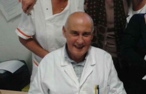 In foto il dottor Simoncini nella foto scattata il giorno del suo pensionamento
