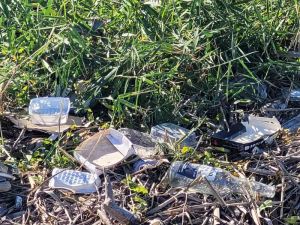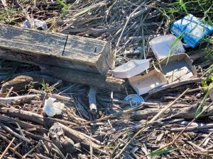 FOTO – La zona della foce dello scolmatore piena di rifiuti