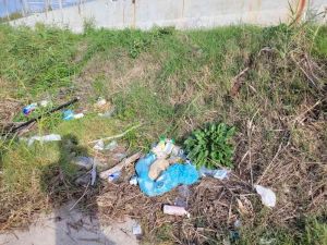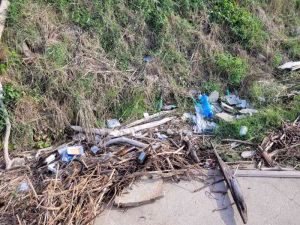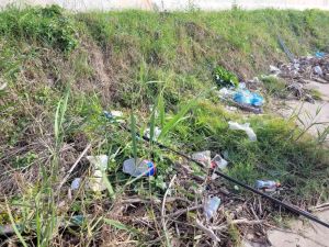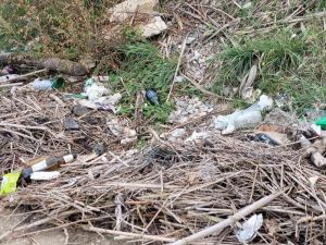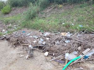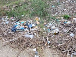 Rifiuti gettati per strada e rifiuti provenienti dalle piene dello scolmatore che gettati a monte si fermano alla foce.