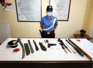 sono stati sequestrati: 1 mazza in legno, 1 coltello, 1 coltello da sub ed 1 coltello serramanico, 1 sciabola, 2 machete, 1 fiocina e bossoli per pistola “scacciacani” a salve, utilizzati nella rissa, 3 spade ed 1 daga;