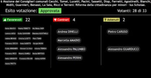 Una frattura che si evidenzia attraverso l’astensione del consigliere Guarducci, quando i restanti sostenitori dell’ex candidato a sindaco hanno votato contrario.