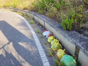 La rotatoria, sprovvista di un passaggio per pedoni, è un luogo di passaggio per i mezzi che circolano sulla strada. Mister Green si chiede come sia possibile che qualcuno abbia lanciato i sacchetti dal mezzo in corsa, senza preoccuparsi delle conseguenze per l’ambiente e per la sicurezza. Si tratta forse di un nuovo sport estremo, o di una sfida tra incivili?