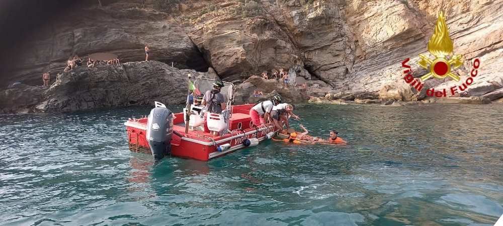 Si infortuna alla spalla sugli scogli, soccorso via mare dai vigili del fuoco
