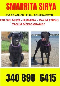 L’appello del proprietario per il suo cane Corso Sirya smarrito.