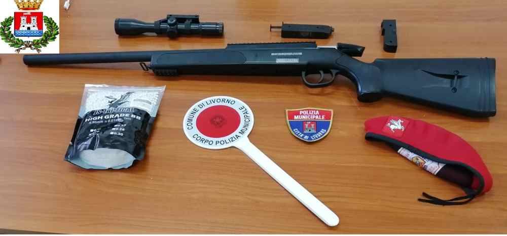 Il proprietario dell’appartamento ha consegnato una carabina ad aria compressa dotata di mirino di precisione e le munizioni; numerosi pallini di plastica dura che sono stati posti sotto sequestro.