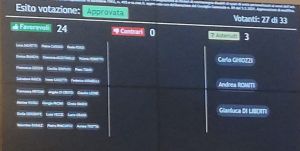 Nuovo regolamento approvato con 24 voti favorevoli, astenuti: Romiti, Di Liberti e Ghiozzi