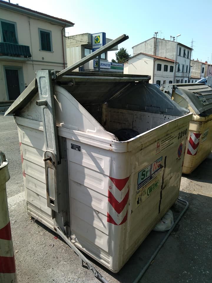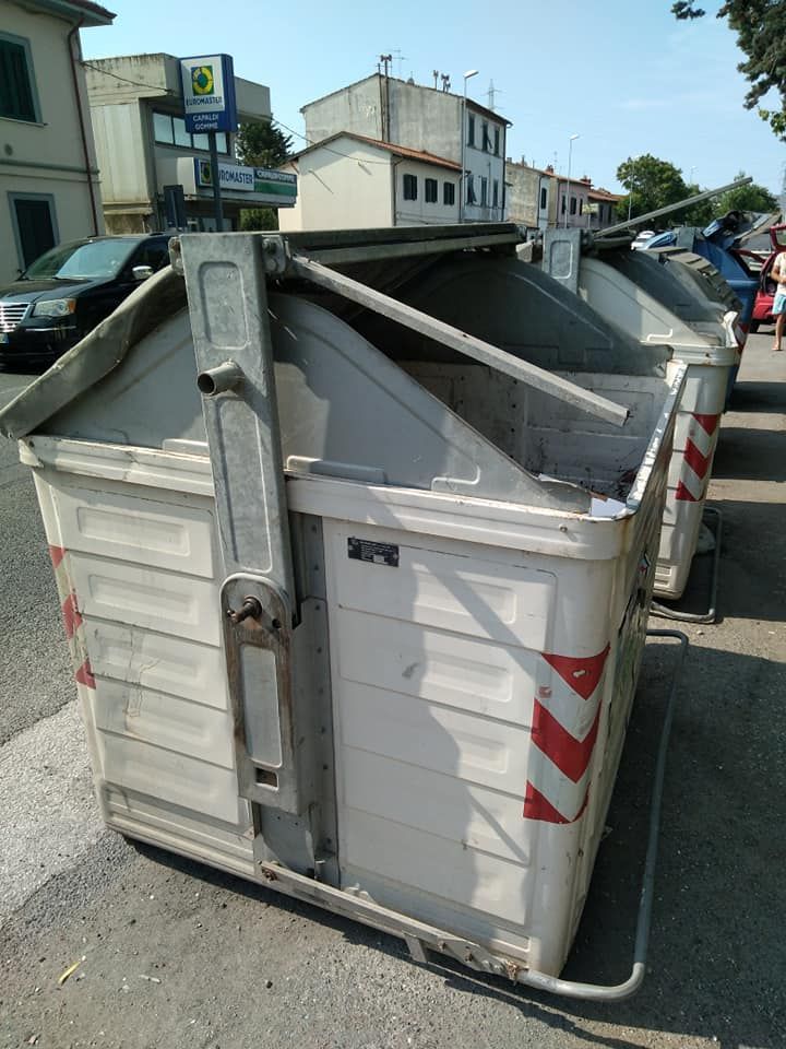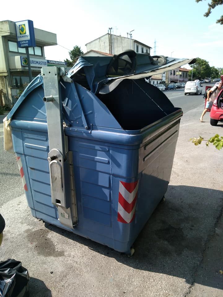Stagno, cassonetti rotti con lamiere taglienti e ruggine