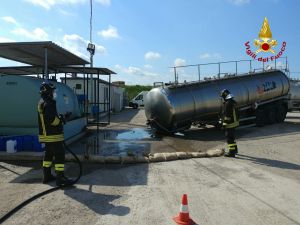 La squadra dei vigili del fuoco ha provveduto a delimitare l’area mettendola in sicurezza ed a predisporre un sistema di contenimento di eventuali perdite.