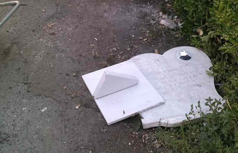 Nonostante le telecamere, un nostro lettore che si era recato ai cassonetti, con  stupore ed incredulità ha trovato in terra una lapide.