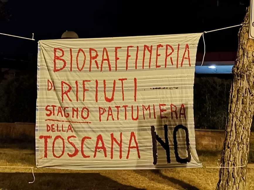 Stagno (Collesalvetti, Livorno) 11 settembre 2019 – L’associazione Collesalviamo l’ambiente riporta all’attenzione dei cittadini di Livorno, Collesalvetti e Stagno il problema dei rifiuti provenienti da gran parte della Toscana che vorrebbero essere bruciati all’interno della raffineria ENi di Stagno: “Non abbiamo affatto dimenticato il progetto della Regione Toscana ed ENI di aggiungere all’interno della raffineria di Stagno un impianto di gassificazione di materiali provenienti da rifiuti dell’area fiorentina. Abbiamo affisso alcuni striscioni a Stagno per chiarire la nostra posizione in proposito”.