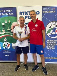 Nel corso della giornata, infine, è stata consegnata una targa commemorativa in ricordo di Fabrizio Gammarota alla moglie e alla figlia; un gesto simbolico che ha emozionato profondamente tutti i presenti e ha riaffermato l’importanza di mantenere vivo il ricordo di una persona tanto amata. L’Atletico Pisa, in accordo con la FISCT Toscana, ha deciso di inserire nel programma “Grand Prix” regionali una tappa fissa dedicata a Fabrizio, che si ripeterà ogni anno. In questo modo, il suo ricordo rimarrà sempre vivo nella memoria di tutti gli appassionati di Subbuteo; un tributo a una persona che ha dato tanto a questo sport e alla comunità.