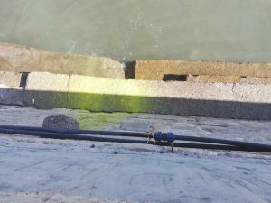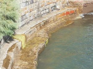 La vernice sversata oltre a spargersi intorno alla fontana, è finita in mare da due punti: