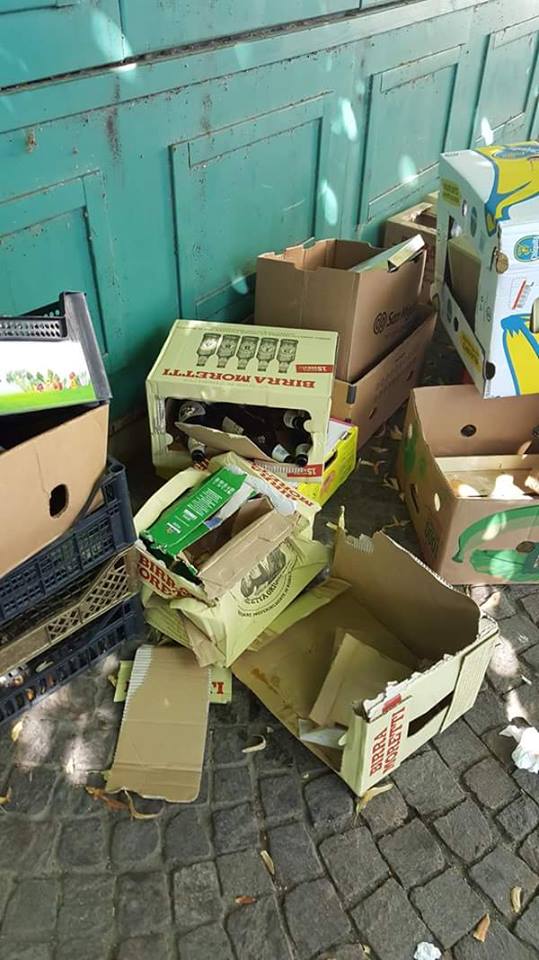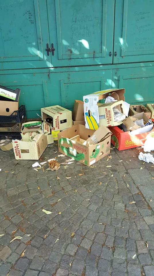 Il tesoro nascosto alla vista di chi vive la piazza Garibaldi, come potete notare non è un forziere dei pirati pieno d’oro, ma la solita mala educazione di chi abbandona i rifiuti così. Esistono dei cassonetti anche con la differenziata nelle vicinanze, ma anche se fosse previsto un servizio AAMPS di pulizia, c’è modo e modo di posizionare i rifiuti in attesa del prelievo.