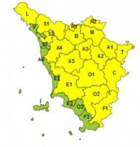L’allerta riguarda praticamente tutta la Toscana tranne la costa e le isole, attenzione per chi si deve spostare nell’interno