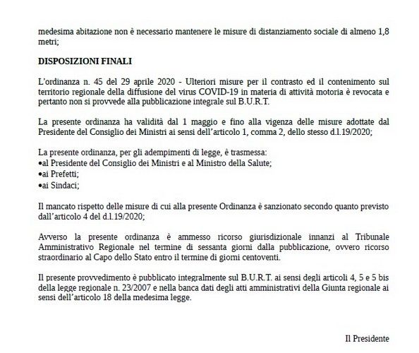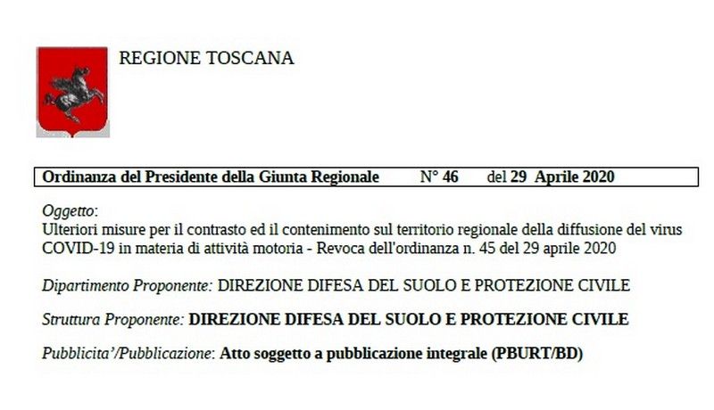 Toscana: Ecco l’ordinanza 46 di Rossi che permette attività motoria a piedi o in bici, da soli o con la famiglia, dal 1 maggio