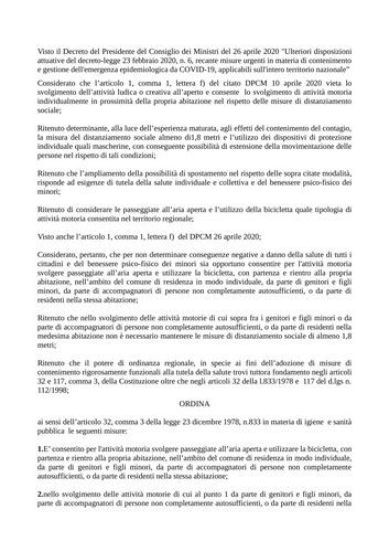 Ecco l’ordinanza 46 di Rossi che ti permette attività motoria a piedi o in bici, da soli o con la famiglia, dal 1 maggio