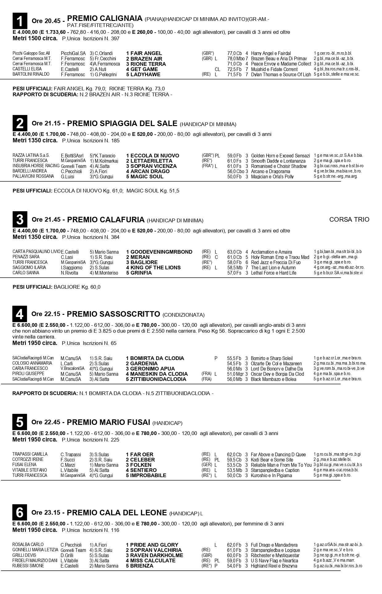 Il Premio Sassoscritto, è una condizionata per i cavalli Anglo Arabo di 4 anni e oltre sui 1.950 metri. La scuderia Clodia presenta due cavalli, Bomirta da Clodia e Zittibuonidaclodia, che puntano a fare l’en plein. Il loro compagno d’allenamento, Maniskin da Clodia, non parte battuto.