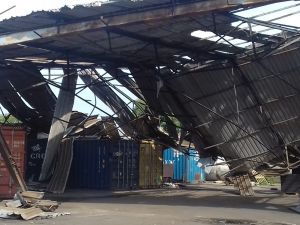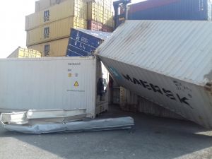 Carambola di container e copertura distrutta in via Enriques (Video)