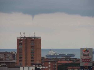 Questa mattina, alle 08:37, il cielo di Livorno è stato testimone di un fenomeno naturale tanto affascinante quanto potenzialmente pericoloso; una tromba marina. Questa colonna d’aria ha iniziato a formarsi in direzione sud al largo della costa. La Tromba Marina ha tentato di formare la sua struttura per circa dieci minuti allungandosi verso l’acqua. Fortunatamente, non ha raggiunto la piena maturazione né ha toccato l’acqua, evitando così di scatenare la sua forza distruttiva.
