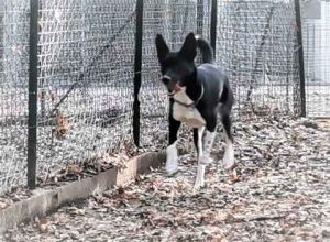 Si tratta di un meticcio maschio di taglia media. Colore nero con le zampe bianche, sprovvisto di microchip