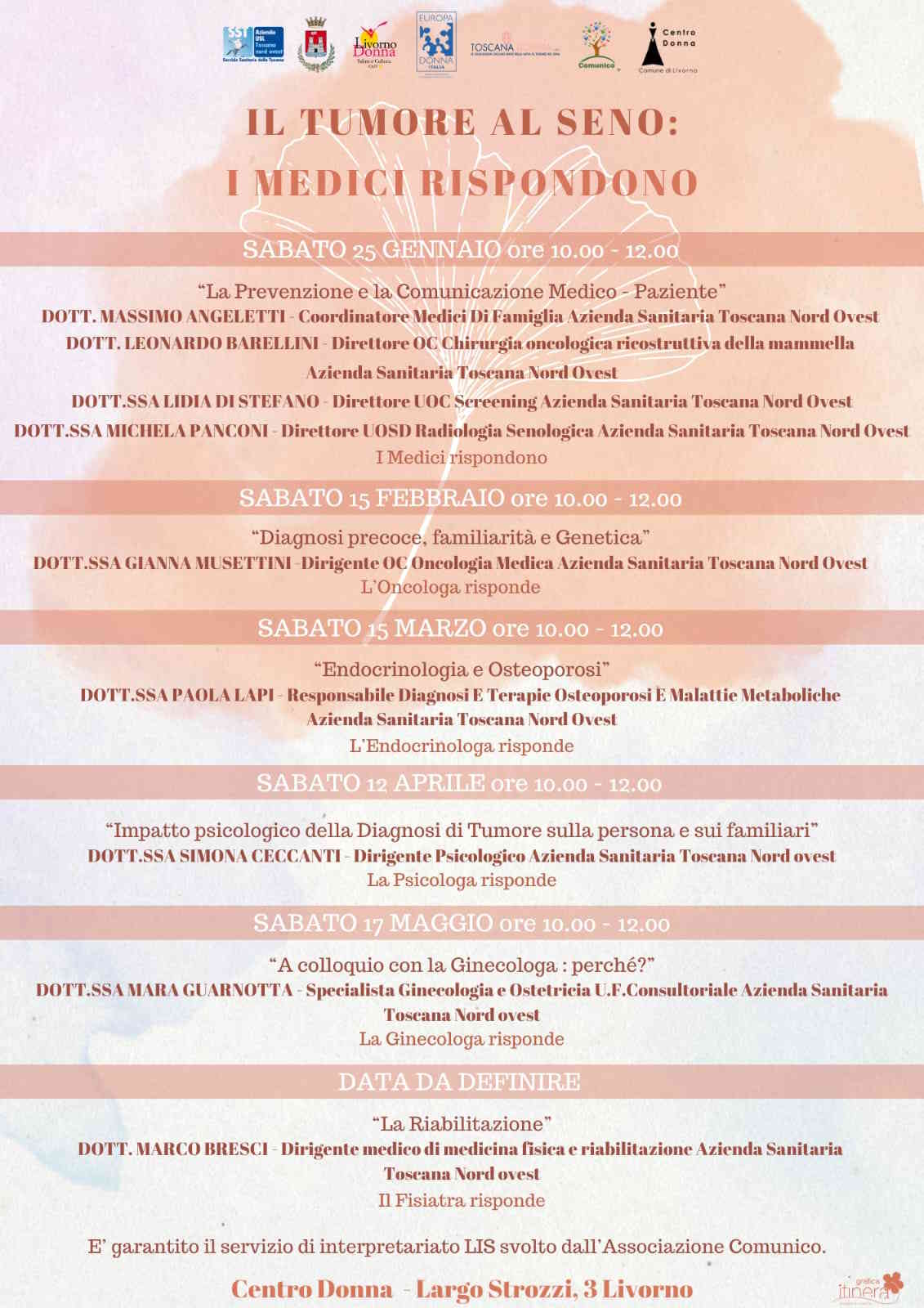 L’evento è il primo appuntamento del nuovo ciclo di incontri dell’iniziativa “Il tumore al seno: i medici rispondono” promossa dall’associazione “Livorno Donna Salute e Cultura” con il patrocinio dell’Azienda USL Toscana nord ovest e del Comune di Livorno che prevede complessivamente sei appuntamenti con professionisti dell’Azienda sanitaria che affronteranno il tema del tumore al seno da diversi punti di vista.