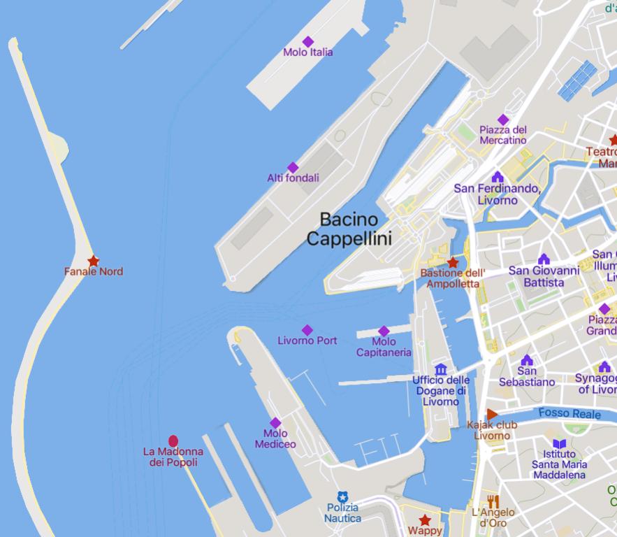 Andando a verificare i moli utilizzati per le crociere nel porto di Livorno emerge, invece, un numero di banchine disponibili quantitativamente sufficiente, ma di qualità non specifica, in quanto in buona parte non destinate al traffico passeggeri (Alto Fondale, Molo Italia, Molo Mediceo, Darsena Toscana) e come tali non integrate con le strutture ricettive situate al Bacino Cappellini, con conseguenze negative sul grado di accoglienza dei croceristi e della loro attitudine allo sbarco.