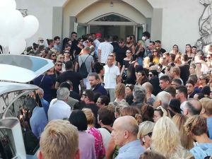 Un migliaio al funerale di Denny Magina: applausi ininterrotti, palloncini bianchi e cori (Foto e video)