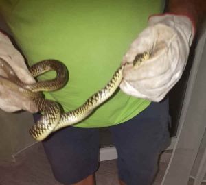 Gli operatori dell’Anpana sono arrivati sul posto e hanno individuato il rettile,  si trattava di un biacco (Hierophis viridiflavus), una specie non velenosa e comune in Italia.