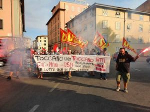 “Toccano uno toccano tutti, giù le mani da Usb. Le lotte non si processano.