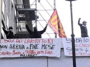 Il sindacato protesta anche per l’attacco al reddito di cittadinanza; per l’approvazione de salario minimo a 9 euro netti l’ora per legge