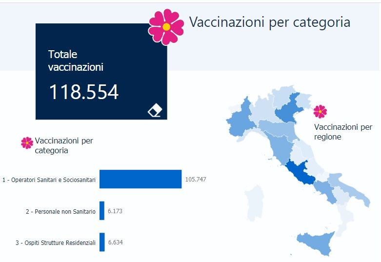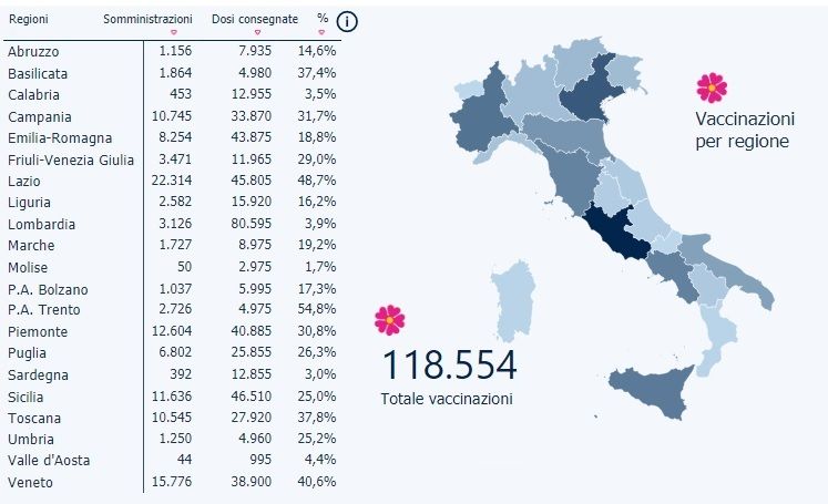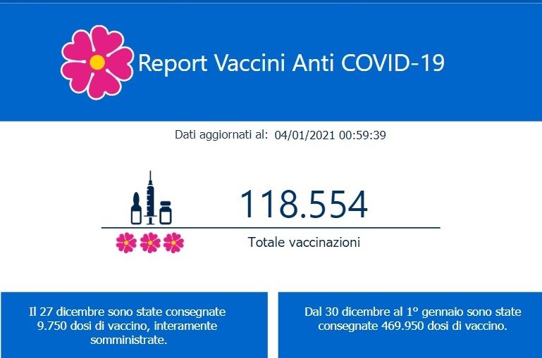 Oggi, 4 gennaio 2021 alle ore 13 risultano vaccinate 118.554 persone