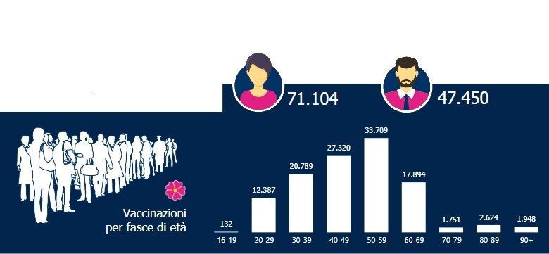 La distribuzione dei vaccini in Italia tra uomini e donne e per fasce di età