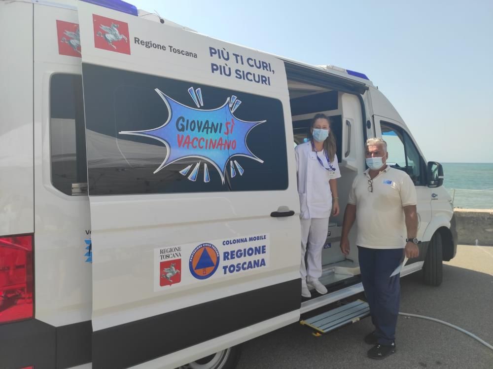 Dalla scorsa settimana un camper attrezzato sta risalendo la costa toscana fermandosi nei punti di maggior aggregazione turistica per offrire, anche senza appuntamento, la somministrazione del vaccino Pfizer anti Covid19. Ieri, 18 agosto, sono state 156 le persone che hanno usufruito della opportunità messa a disposizione durante il giorno alla Rotonda di Ardenza e la sera nel quartiere della Venezia,