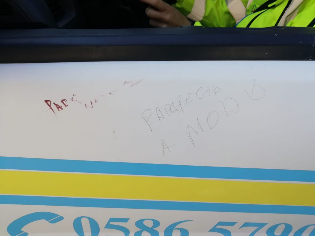 L’ambulanza era parcheggiata nel vicino parcheggio del cimitero di Montenero, dove la confraternita per mancanza di spazi lascia i suoi mezzi. Ed è qui che ignoto/i hanno scritto su una fiancata dell”ambulanza “Parcheggia a Modo”