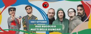 Il Duo Bucolico, invece, nasce nel 2005 in Romagna come frutto delle menti di Antonio Ramberti e Daniele Maggioli. I due artisti scrivono canzoni di “cantautorato illogico d’avanguardia” e dal vivo riescono sempre a suscitare l’ilarità generale del pubblico. Il loro stile è volutamente ebbro e ironico, mosso da una leggerezza pensosa e anarcoide. I concerti sono un concentrato di improvvisazione e libertà, in una continua ricerca del contatto col il loro pubblico, molto eterogeneo ed affezionato. Il nuovo disco del Duo Bucolico si chiama “Via col vento” ed è uscito a maggio 2022.