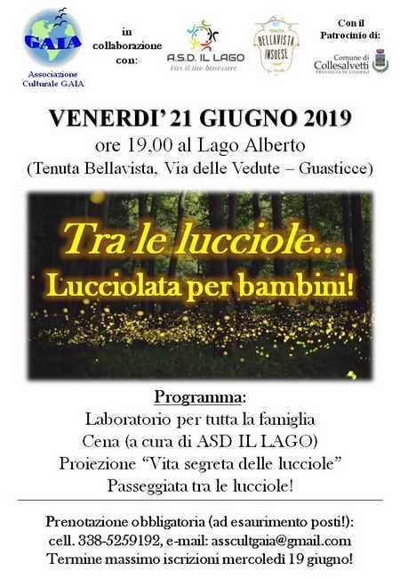 Livorno – Altre due lucciolate per grandi e piccini organizzate dall’Associazione Culturale GAIA venerdì 21 e sabato 22 giugno ore 19,00 al Lago Alberto (nella Tenuta Bellavista Insuese a Guasticce), in collaborazione con ASD Il Lago.