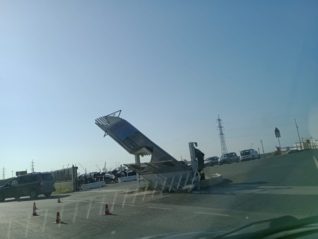 Da quanto è dato sapere al momento, una bisarca avrebbe sbagliato manovra e agganciato una parte della recinzione e la torretta-insegna dei piazzali Bertani (più noti come ex Fratelli Elia).