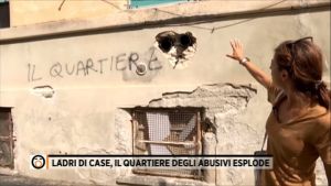 La giornalista infatti si fa riprendere davanti a un buco nel muro da dove escono dei tubi e poi riferendosi agli occupanti abusivi dice: