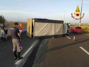 in direzione Livorno nei pressi dell’uscita di Vicarello, Un furgone che viaggiava in direzione Livorno, si è rovesciato sulla carreggiata della Firenze -Pisa – Livorno nei pressi dell’uscita di Vicarello nel Comune di Collesalvetti