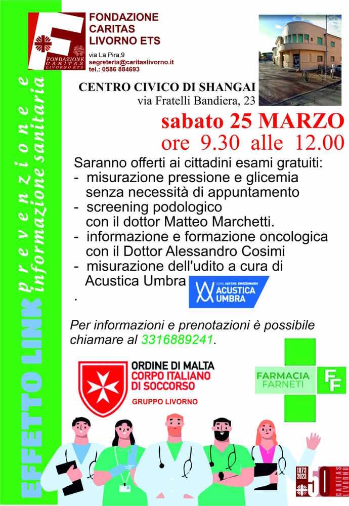 Su prenotazione, la mattina saranno presenti un consultorio di informazione e formazione oncologica, dottor Alessandro Cosimi e uno screening podologico, dottor Matteo Marchetti.