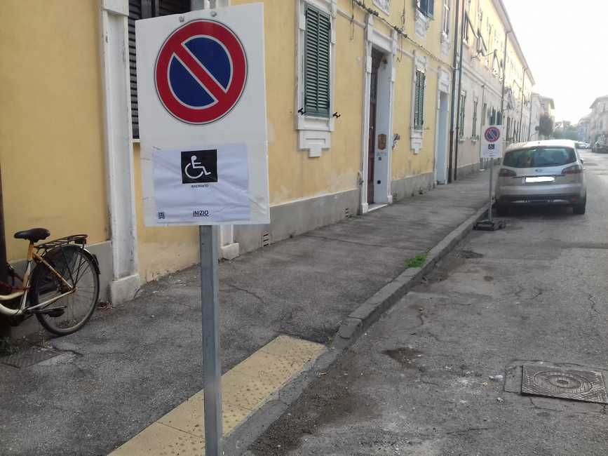 Per quanto riguarda il posto riservato ai disabili, il comune ha provveduto ad apporre una segnaletica temporanea che riserva più avanti il parcheggio.