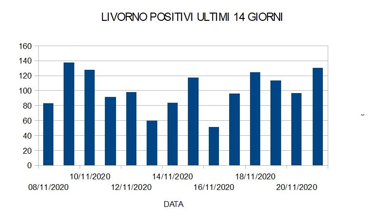 Il numero di positivi covid registrati nella città di Livorno dal giorno 8 novembre 2020 al 21 novembre 2020