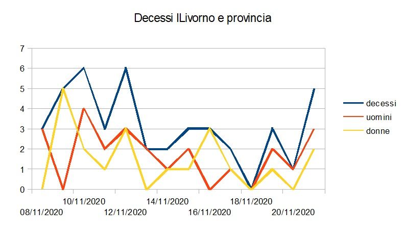 La settimana antecedente all’entrata in zona rossa a Livorno e provincia si sono registrati 27 decessi. I decessi nella settimana di “lockdown” sono scesi a 17