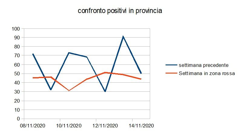 I dati covid della prima settimana in zona rossa e quelli della settimana precedente.